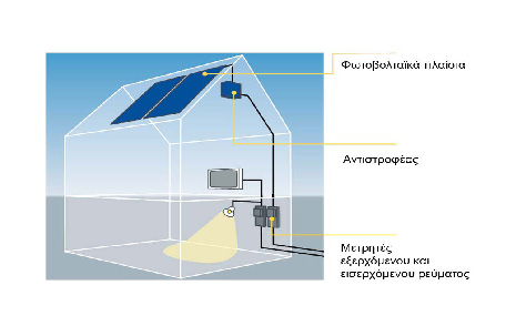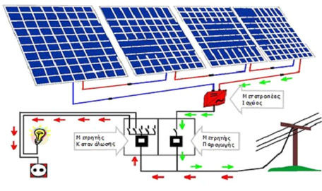 - Μετρητής της ΔΕΗ συνδεδεμένος ανάμεσα στο φωτοβολταϊκό σύστημα και στο δίκτυο καταγράφοντας τις παραγόμενες kWh