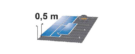 - Σε περίπτωση τοποθέτησης των φωτοβολταϊκών σε υπάρχουσες στέγες, θα πρέπει αυτή να γίνεται εντός του όγκου της στέγης ακολουθώντας την κλίση τους και να απέχει μισό μέτρο από τη περίγραμμά της.