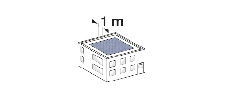 - Αν τα φωτοβολταϊκά τοποθετούνται σε δώμα, θα πρέπει η απόσταση από το στηθαίο του δώματος να είναι ένα (1) μέτρο εσωτερικά αυτού για λόγους ασφαλείας.